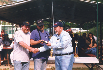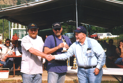 Les Ugly covets the 2nd Place Trophy while Bud Ugly receives a hardy handshake
